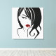 Lieblich, Retro mädchenhaft Thema in Schwarz-Weiß. Eine schöne Frau Gesicht mit roten Lippen und lockigen Haaren. Spaß, Retro zeichnend.