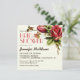 Klassische rote Rose Braudusche. Blumenthema für Frühjahrsheirat mit Blume überall. Die Rückseite ist mit Streifen geschmückt. Blühende weiße Rosen. Passen Sie die Einladung für jeden besondere Anlass wie Hochzeit, Verlobung, Jubiläumsfeier, Meilenstein Geburtstag, Babydusche und mehr an.