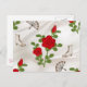 Ein hübsches, Vintages Blumendesign mit rote Rosen, eleganten Damen-Fans und Stiefeln, Set auf dem Hintergrund eines Elfenbeinseidenbildes, das an die Viktorianische Zeit erinnert.