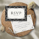 Diese 5" x 3,5" Hochzeitskarten haben einen Vintagen gotischen Stil mit schwarz-weißem Imitat. Auf der Rückseite befinden sich Platzhalter mit Zeilen, damit der Gast seinen Namen ausfüllen und seine Wahl für die Teilnahme auswählen kann.