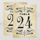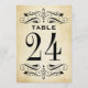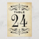 Vintage Hochzeitskarten mit Tischnummer sind mit dekorativen Wirbel und Schnörkeln auf beiden Seiten der Karte ausgestattet. Rustikale antike strukturierte Hintergrund mit schwarzem Design. Personalisieren Sie jede benötigte Tischnummer und fügen Sie diese einzeln in Ihren Warenkorb ein.