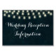 Klassisches, sentimental landschaftliches Bild von Saiten, die von Seite zu Seite herumschwirren, ähnlich wie eine landschaftliche Outdoor-Szene oder ein antikes Brautpaar. Dunkelblauer Hintergrund mit verwittertem Effekt und blass aussehenden, klaren Glühbirnen-Strängen. Design Copyright © CustomInvitesOnline.com