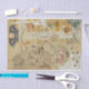 Creative & Unique Decoupage Tissue Paper mit einer Reihe von Texturen, Mustern und Vintagen Illustrationen in lebhaften, gedämpften Farbpaletten. Ideal für Entcoupage, Schrottbuchung und andere Papierboote. Vintages französisches Gewebeschlagpapier mit dekorativen Motiven, Figuren & verzierten Blumenmustern in Blau, Rosa, Orange und Grün auf einem texturierten Bretterhintergrund mit Hinweisen auf Vintage Typografie, französische Handschrift und Spitzen.