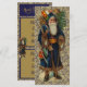 Vintage Santa on Blue und Gold Flat Card. Vintager Santa on Blue Leather und Glitzer Gold Look Hintergrund. Foto und Text bearbeiten.