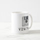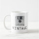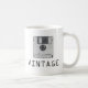 Dieses lustige, themed Tasse des Computers kennzeichnet eine alte Schuldiskette und das Wort, die darunterliegend Vintag sind. Ein nostalgisches Bild für Aussenseiter, Technologien und jedermann, die Computer benutzt.