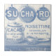 Diese schöne Schokoladenwerbung ist eine Vintage Illustration aus dem Jahr 1900. Suchard Schokolade ist hier auf Küchentöpfen und Keramik Töpfe geschrieben, die die ausgezeichnete Kakao und Haselnuss, die in ihre Schokoladenherstellung geht, in der Werbung. Blaues Thema. Ideal für eine Küche Rückenspritze oder gerahmt an der Wand.