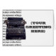 Vintage Schreibmaschine vor einem Hintergrund typisierter Wörter. Fügen Sie Ihren personalisierten Gruß und eine Nachricht hinzu.