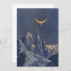 Vintage Illustration futuristische Science Fiction Planeten und Weltraumbild. Ein 50er Retro-Sci-Fi-Comic Buch-Design mit einem fremden Planeten bedeckt mit Eis und Schnee in der Nacht mit einem Halbmond über den Bergen im Winter.