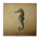Eine Vintage Seepferdillustration auf einem antiqued Papierhintergrund. Dieses retro Seepferdefederzeichnen vom frühen 1900's zeigt sich gut gegen einen goldenen braunen Hintergrund, der gemacht worden ist, um wie altes Papier auszusehen. Dieses funky Seepferdbild kann auf vielen verschiedenen Produkten leicht besonders angefertigt werden und gedruckt werden.
