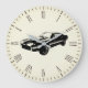 Vintages amerikanisches Muskelfahrzeug auf beige Unterlage mit römischer Ziffernuhr
