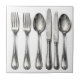 Elevate your space with timeless elegance! This sophisticated illustration showcases a classic arrangement of ornate silver flatware including forks, spoons, and knives rendered in detailed monochrome with intricate floral engravings on the handles. The vintage watercolor style and subtle shading create a refined, nostalgic mood that's perfect for adding a touch of heritage charm to any kitchen or dining area.
