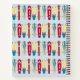 Vintage Skateboards mit spiralgebundenem Notebook.
