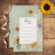 Diese Hochzeitskarte zeichnet sich durch einen wunderschönen Rahmen von sanften Aquarellblumen und anderen sommerlichen Blumen auf einem sanften, lichtdurchfluteten und ruingrünen Hintergrund aus. Es ist romantisch mit einer Touch von Vintag. Es wurde von der einfachen Bauernpresse erschaffen und ist Teil der Vintagen Summer Sunflower Floral Wedding Suite mit Karten.