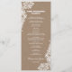 Vintage Hochzeitsprogramm mit weißen Spitzen Details auf dem Hintergrund von Kraftpapier. Ideal für rustikale Hochzeiten und andere Veranstaltungen.