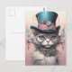 Vintage Steampunk-Katze in blauem Tophat Postkarte