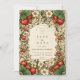 A lush botanical design bursting with ripe strawberries, delicate white blossoms, and curling vintage vines creates a warm, romantic setting for your celebration. This artwork blends antique illustration style with garden-fresh charm, wrapping your event details in a richly detailed frame. Perfect for couples who love rustic countryside aesthetics, berry themes, or whimsical outdoor weddings. Customize the text easily to make it yours and give your guests a beautiful first impression of your day.