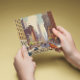 Vintage-Reiseplakat New Yorks mit dem Chrysler Gebäude and Empire State Gebäude im Hintergrund