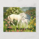 Schönes Vintages Bild einer Mutter Einhorn und ihr Fohlen auf einer Wiese, ziert diese Postkarte. Eine schöne Art, jemandem einen glücklichen Muttertag zu wünschen!
