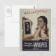 Dies ist ein Bild eines Vintagen Propagandaposters aus dem Weltkrieg, das ein kleines Mädchen zeigt, das ein Foto einer Welle anschaut und sagt: "Wünscht, dass ich auch mitmachen kann".