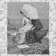 Die Vintage Kunstillustrierung Viktorianische Schwarz-Weiß-Liebe und Romantik-Bild mit einem Mann und einer Frau, die auf einem Felsen am Meeresufer sitzen, die Dame hält einen Sonnenschirm, um sie vor der Sonne zu schützen. Künstler: Percy Tarrant, 1886.