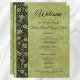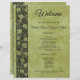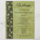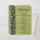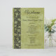 Einfache Anpassung des Hochzeitsprogramms. Fügen Sie einfach Ihre Infos hinzu! Vintage Illustration Liebe und Romantik Viktorianische Traubenrebe Blätter blumengeschmückte Rahmen mit variierten grünen Hintergrund. Eine schöne Wahl für eine lässige Gartenhochzeit in einem Weingut oder Weinberg.