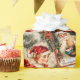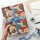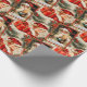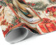 Dieses Verpackungspapier zeigt ein altes Weihnachtsthema mit einer klassischen Darstellung des Weihnachtsmanns in der Mitte, hält Geschenke und ist umgeben von festlicher Vegetation. Das Design besteht aus Kiefernästen, Heiligen und einem kleinen Mädchen, das ihm ein nostalgisches und gemütliches Urlaubsatmotiv verleiht. Im Hintergrund finden Sie traditionelle Weihnachtselemente wie Geschenkboxen, Grünpflanzen mit Kieferntönen und rote Bänder, die zu einer festlichen und fröhlichen Atmosphäre beitragen. Das ästhetische Ganze wirkt zeitlos, altmodisch und erinnert an die Urlaubskarten des frühen 20. Jahrhunderts.
