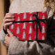 Ein rot-weißes, modernes und minimalistisches Weihnachtsverpackungspapier mit Vintager Darstellung eines norwegischen Fichtenbaumes.