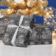 FROHE WEIHNACHTEN U. GUTEN RUTSCH INS NEUE JAHR: Retro Schwarzweiss-Typografie des hellen und netten wunderlichen Tafelart Weihnachtsbaum-Geschenkverpackungs-Papiers und extravaganter Wirbel. Personifizieren Sie dieses dekorative Feriengeschenkverpackungspapier mit Ihrem Monogramm oder dem Jahr. Zeitgenössische, klassische, moderne und stilvolle Weise, modische glückliche Winterurlaubgrüße zu schicken allen Ihren Freunden und geliebten mit rustikalem und traditionellem Charme.