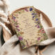 Umgeben Sie Ihre Feier mit der Schönheit der Natur in Blüte. Dieses Design zeichnet sich durch eine verzierte botanische Grenze von bunten Wildblumen in lila, blau, gelb und weich rosa, Set vor einem warmen Vintagen Hintergrund aus. Romantisch und zeitlos, ideal für rustikale Hochzeiten auf dem Land, Frühjahr- oder Sommerzeremonien und Gartenfeiern inspiriert. Vollständig anpassbar mit Ihren persönlichen Daten für einen einzigartigen Sake.