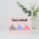 Retro-Dreiräder auf hellrotem und weißem Hintergrund. Passen Sie es mit Ihrem eigenen Text an. Perfekt für eine Geburtstagsparty!