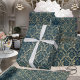 Ein Vintages, florales Damastpapier in Grün- und Goldtönen.
