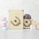 Vintage Biene und Kranz-Illustration auf gemustertem Hintergrund.
