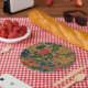 Blumendesigner Garden Blume - Dieses Bild basiert auf einem Vintagen Blumengesteck aus Textilien. Das Original befindet sich im Metropolitan Museum. Dies ist eine fotografische Reproduktion von Nadelwerkstoffen.