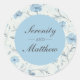 Siegel Sie Ihr Hochzeitsgeschenk mit Charme mit diesem Blumengarten Hochzeitsaufkleber, personalisiert mit den Namen der Braut und des Bräutigams. Dieser elegante Aufkleber mit sanft staubblauen Wasserfarben ist eine hübsche Touch für Umschläge, Gastgeschenke Hochzeiten und Empfang. Ideal für rustikale, Vintage Shabby Chicen und Cococore-Hochzeiten, es Krawatte Ihre Schreibwarensuite zusammen mit romantischem Sommerstil und anmutigen Details. Ein wunderschöner Sake wird sich schon lange nach Ihrer Feier an Sie erinnern.