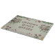 Ein Vintages Schneidebrett mit Blumenelementen und individuellem Text in den Farben Grün, Rot, Rosa, Weiß und Gelb.