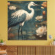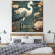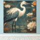 Vintager botanischer Kranich und Lotus Leinwanddruck