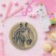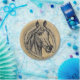 Vintage Illustration ist eine Cameo-Darstellung eines Pferdes mit Hufeisenrahmen. Hintergrund für Burlap-Textur