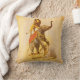 Vintage Circus Art Throw Kissen Vintage Zirkuskunst mit einem Löwen, der auf einem Elefanten reitet, der Fahrrad fährt. Die Rückseite des Kissens ist mit einem Vintagen Zirkusmotiv, einem roten Retro-Grunge-Sonnenaufgang versehen.