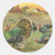 Vintager Erntedank mit Truthühnern und Pilgern Runder Aufkleber