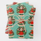 Dieses Muster zeichnet sich durch einen leichteren, aquamarinen Hintergrund aus, mit einem wiederholten Design eines Mädchens, das in einem klassischen, roten Urlaubskleid gekleidet ist, gepaart mit Illustrationen des Weihnachtsmannes und festlichen Kränzen. Die Aufnahmen sind mit "Frohe Weihnachten"- oder "Happy Holidays"-Bannern gerahmt und fügen dem Gesamtbild eine reizvolle und Vintage Touch hinzu. Das Design ist elegant und dennoch spielerisch. Es eignet sich perfekt zum Umwickeln von besonderen Geschenken.