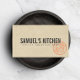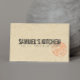 Dieses Design-Visitenkarten-Template verfügt über ein vollständig anpassbares Namenslogo und ein Design-Element aus Gummi-Briefmarke, das Ihrem Unternehmen eine Markendarstellung verleiht. Alle Elemente können personalisiert sein. Vintag inspiriert mit einem kühlen, modernen Rand. Set auf einem Karton/Kraftsackbild für eine rustikale Ästhetik. Ideal für Catering, Restaurants, Crafters, Bäckereien und vieles mehr. © 1201AM