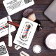 Revitalisieren Sie Ihr Branding mit unseren Vintagen Barbershop Visitenkarten! Diese Karten mit einem im Retro-Aquarell lackierten Barberenstahl in ikonischem Rot, Weiß und Blau verfügen über eine einzigartige Textkonfiguration in einer Doppelbogenformation rund um den Pol. Die klassische Retrotypografie verleiht Ihrem Branding eine Touch zeitlosen Charmes. Diese coolen, trendigen und absolut einzigartigen Karten sind perfekt für Friseure und Stylist, die eine Aussage treffen möchten. Bestellen Sie jetzt und erhöhen Sie das Image Ihres Friseur-Shop mit einer Touch von Vintagem Flair!