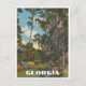Ein altes Bild eines georgischen Gartens illustriert diesen wunderschönen US-Staat mit Blume, Azaleen, Kiefern und Moos in den Bäumen. Der Name Georgia unten in einem Vintagen Schriftart kann bearbeitet oder entfernt werden.