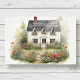 Wunderschönes Vintages Aquarellhaus im Stile eines Palazzo, umgeben von dem quintessenten antiken Hütte Garten mit Wildblumen in Regenbogenfarben. Ideal für die Herstellung und Dekoration von Möbeln. Kunstwerk grafisch von Audrey Jeanne Roberts, einer international anerkannten Künstlerin und Designerin, urheberrechtlich geschützt. MSP0125-1A