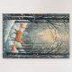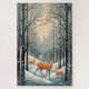 Ein wunderschönes Puzzle mit Vintager Kunst für den seriösen Rätsel, ein saisonales, Vintages Puzzle im Gouache-Stil in winterlichen Farben, das Reh in einem schönen Schneewald in saisonalen blauen Wintertönen.