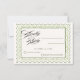 Diese elegante Vintage RSVP-Karte bringt zeitlosen Charme und Eleganz in Ihre Hochzeitssuite oder Ihr Brautparty-Schreibgerät. Mit einer zarten grünen Grenze und einem raffinierten Rahmen bietet es eine klassische und dennoch stilvolle Art, auf Ihre Gäste zu antworten. Die knusprige Typografie und das saubere Layout bieten viel Platz für Namen, Anwesenheitsdetails und die Auswahl der Speisen, sodass Ihr besonderer Tag schön organisiert ist. Diese RSVP-Karte eignet sich ideal für Hochzeiten, Proben, Brautpartys, Verlobungsfeiern oder Feiern. Sie verleiht dem Gast eine Touch alter Eleganz und bewahrt gleichzeitig die moderne Benutzerfreundlichkeit. Das vielseitige Design verbindet sich nahtlos mit traditionellen und zeitgenössischen Einladungen und ist somit eine hervorragende Wahl für Paare, die ihre Schreibwaren so gewollt haben, dass sie Anmut und Liebe zum Detail widerspiegeln. Diese Karte ist auf hochwertigem Cardstock gedruckt und wird nicht nur für Ihre Gäste bequem, sondern auch für Ihre Hochzeitssuite zum Sake. Passend zu den Einladungen, Menüs, Platzkarten und Dankeschön-Noten für ein zusammenhängendes und unvergessliches Set, das Ihre Veranstaltung bereichert.