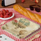 Vintager Heißluftballon in einer Serenlandschaft ( Pappteller