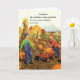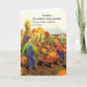 Vintage Grußkarte mit Junge und Mädchen, die Kürbisse sammeln.