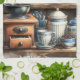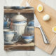 Vintager Kaffeebecher Töpfchen blau Geschirrtuch