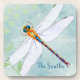 Vintager Libellenfliege im Hintergrund verblasster Getränkeuntersetzer